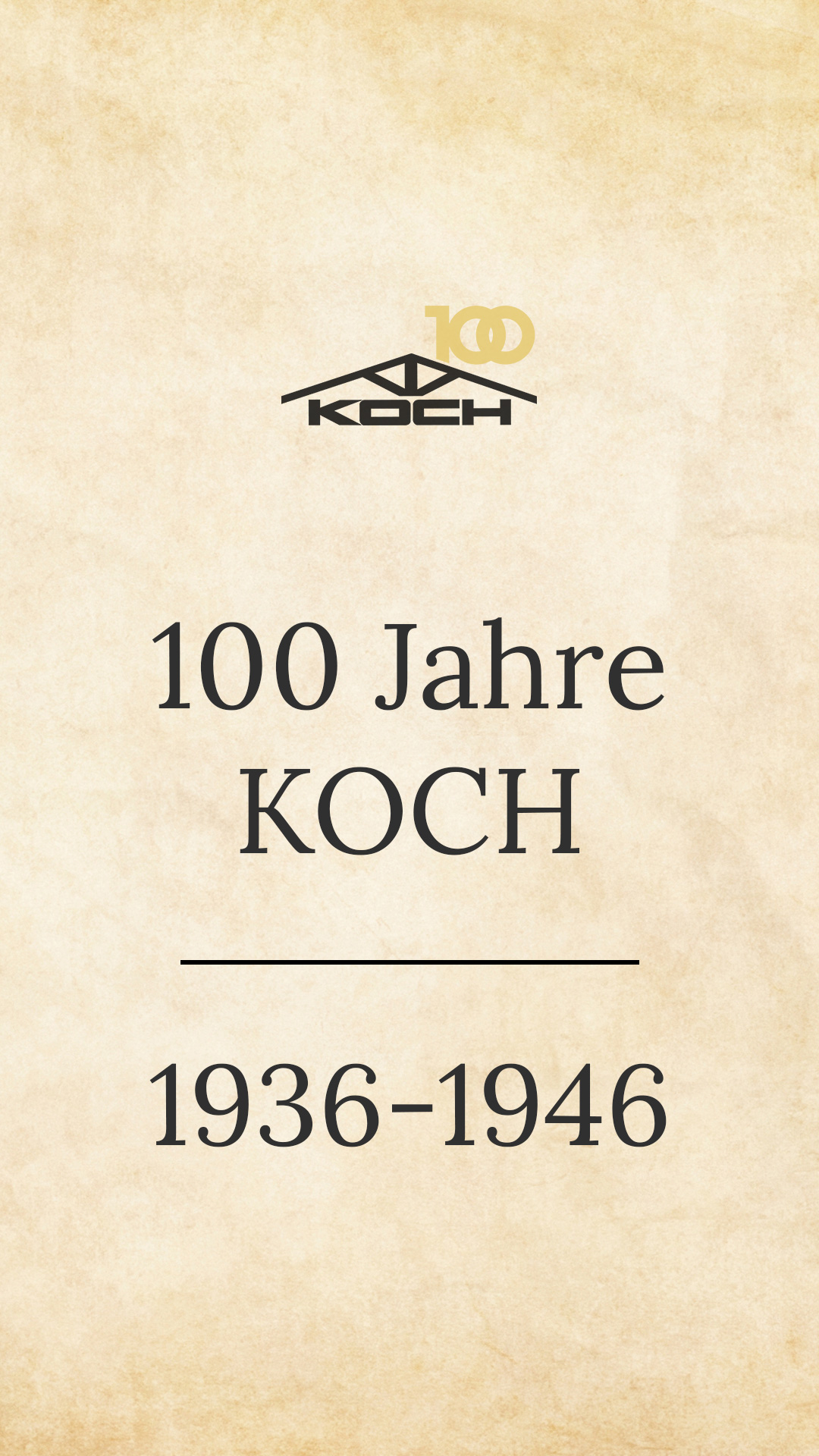 Der Zweite Weltkrieg riss nicht nur Menschen auseinander – auch die Aufträge blieben aus. Wie KOCH AG trotzdem weitermachte erfährt ihr bald.