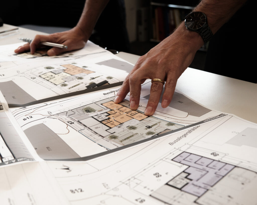 Die Projektierung umfasst den Entwurf, die Ausarbeitung architektonischer Konzepte sowie die Erstellung von Studien und Vorprojekten. Technische Grundlagen werden definiert und Varianten geprüft sowie Lösungen mit Bauherrschaft, Fachplanern und Behörden abgestimmt. Gemeinsam legen wir Kosten, Termine und Abläufe fest.