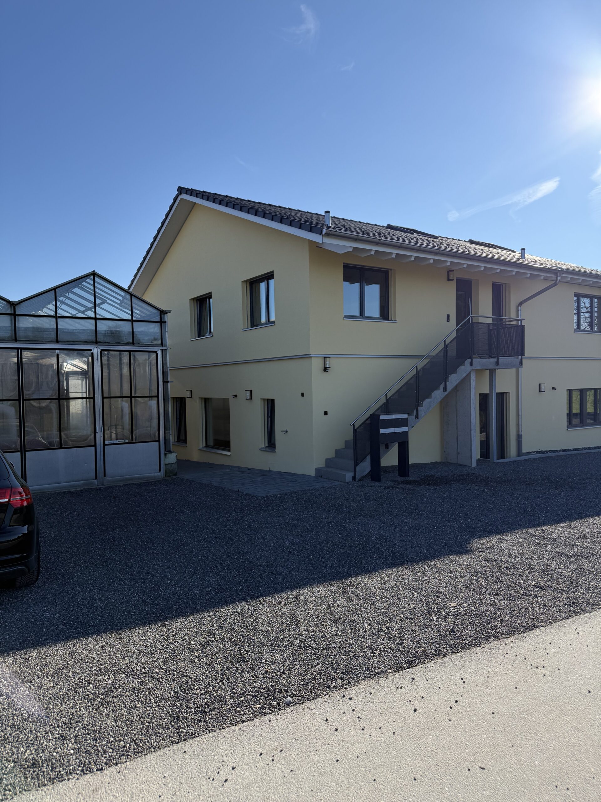 Die Fassade wurde als hinterlüftete Sto-Fassade mit Putzträgerplatten ausgeführt und anschliessend verputzt.