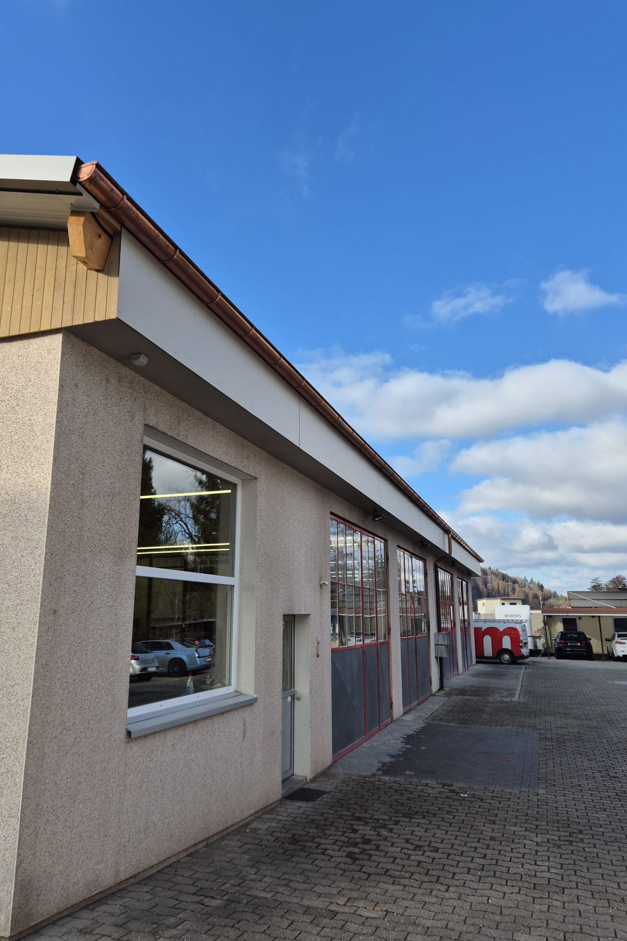 Es wurden neue Binder, Sparrenpfetten sowie Windverbände aufgerichtet und eine Trennwand gestellt. Für eine saubere und funktionale Basis wurde zudem ein Vollholzboden verlegt. Den oberen Abschluss bilden neu geschalte Giebelfassaden, die das Gesamtbild abrunden und dem Gebäude einen frischen Charakter verleihen.