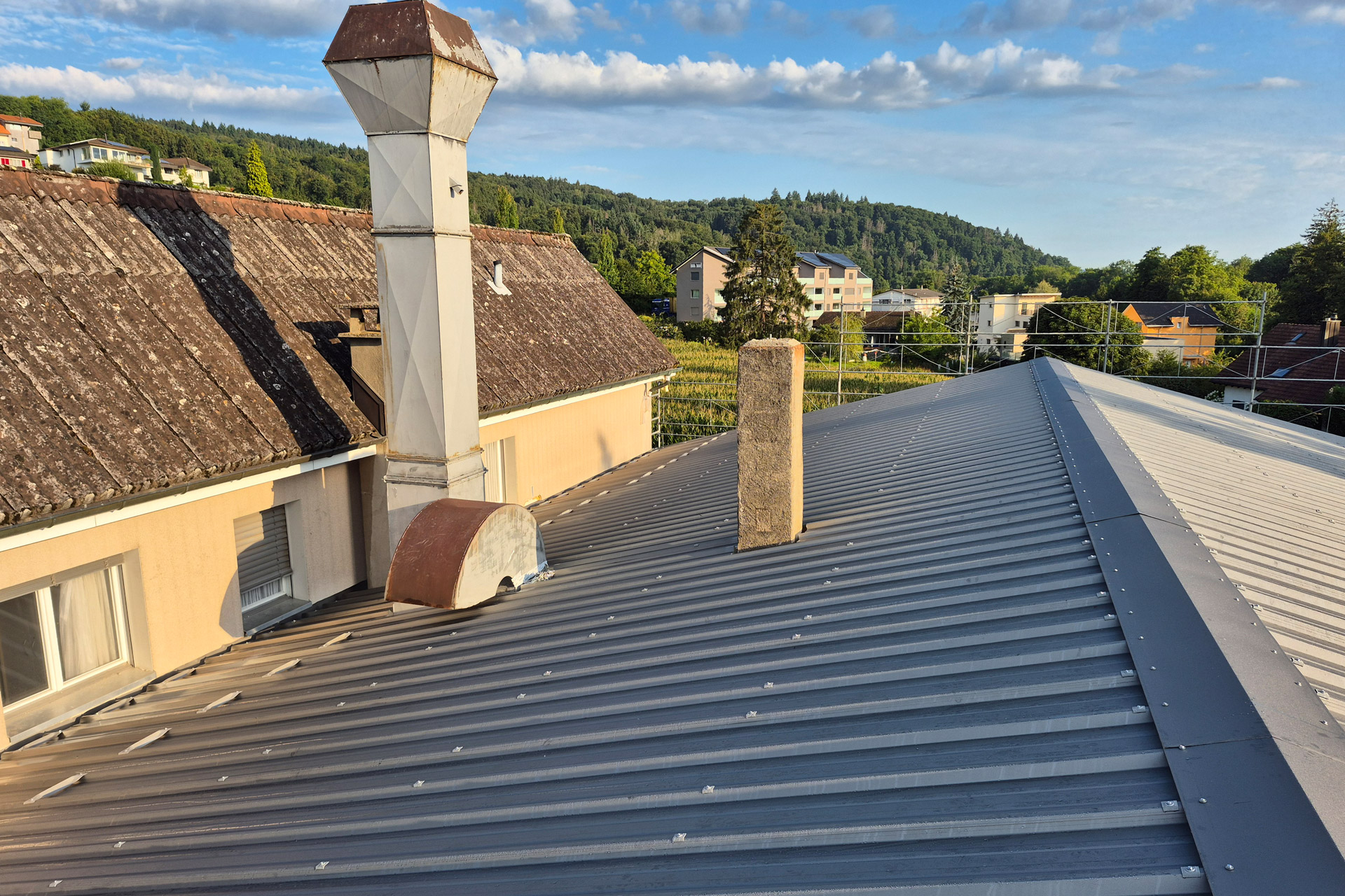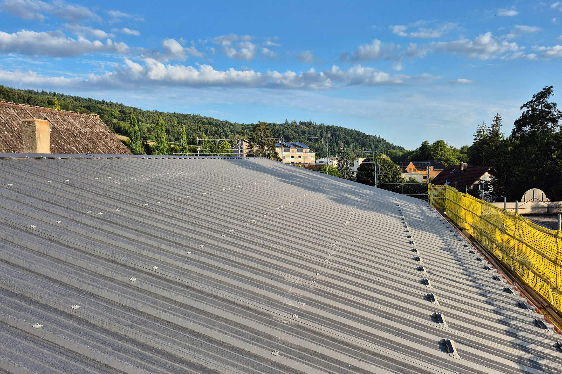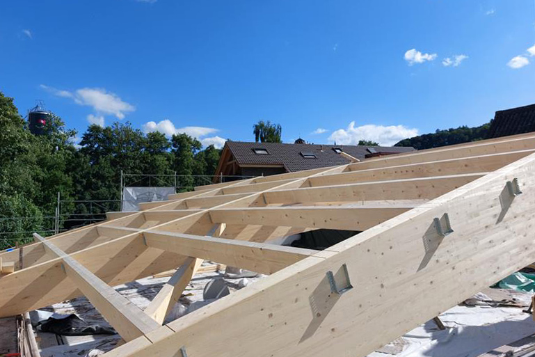 Bei dieser Ersatz-Dachkonstruktion stand die statische Sicherheit im Vordergrund: Die einsturzgefährdete, bestehende Dachkonstruktion wurde vollständig zurückgebaut und durch eine neue, tragfähige Holzkonstruktion ersetzt.