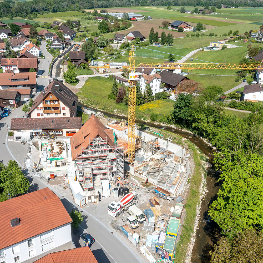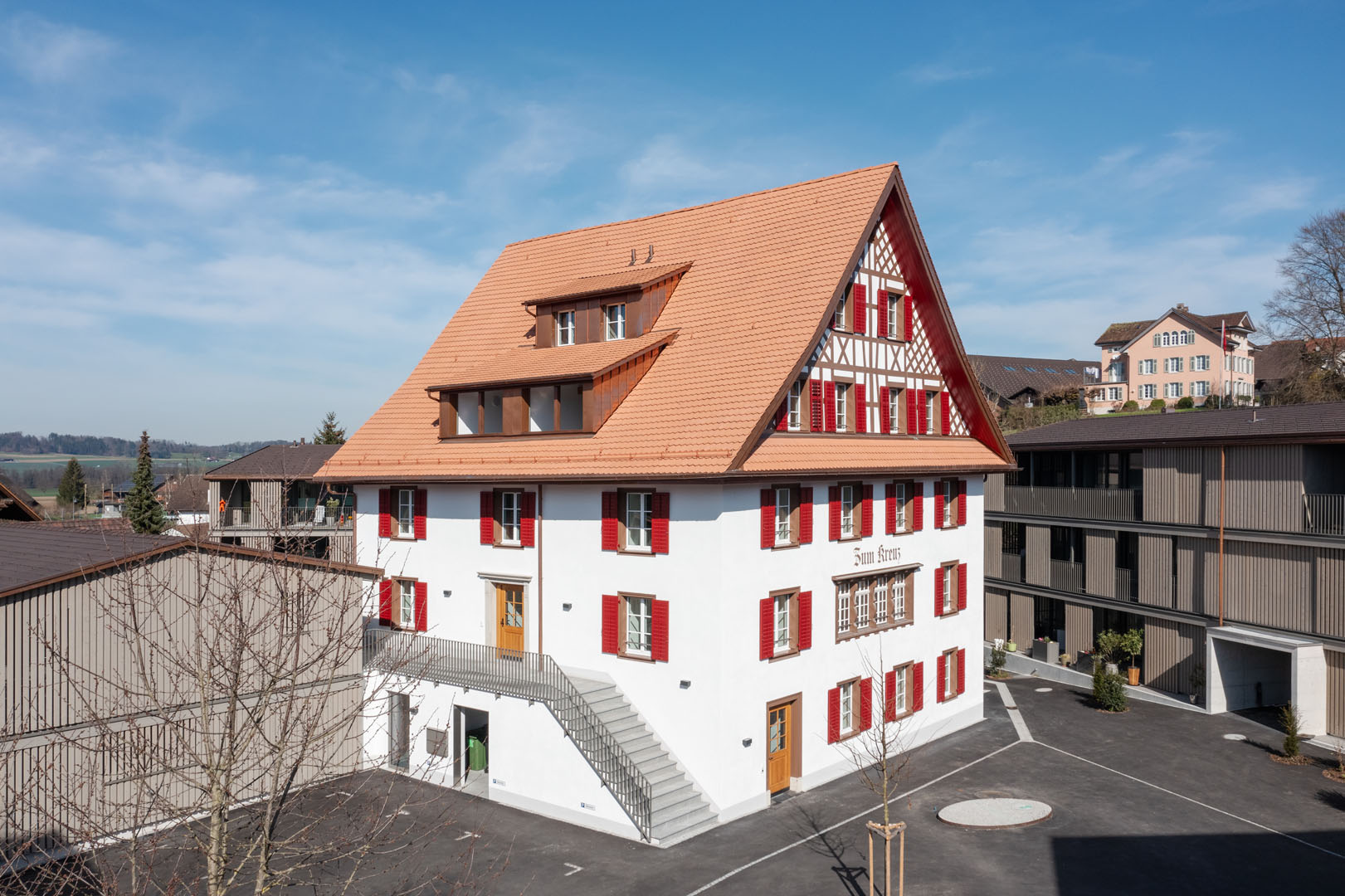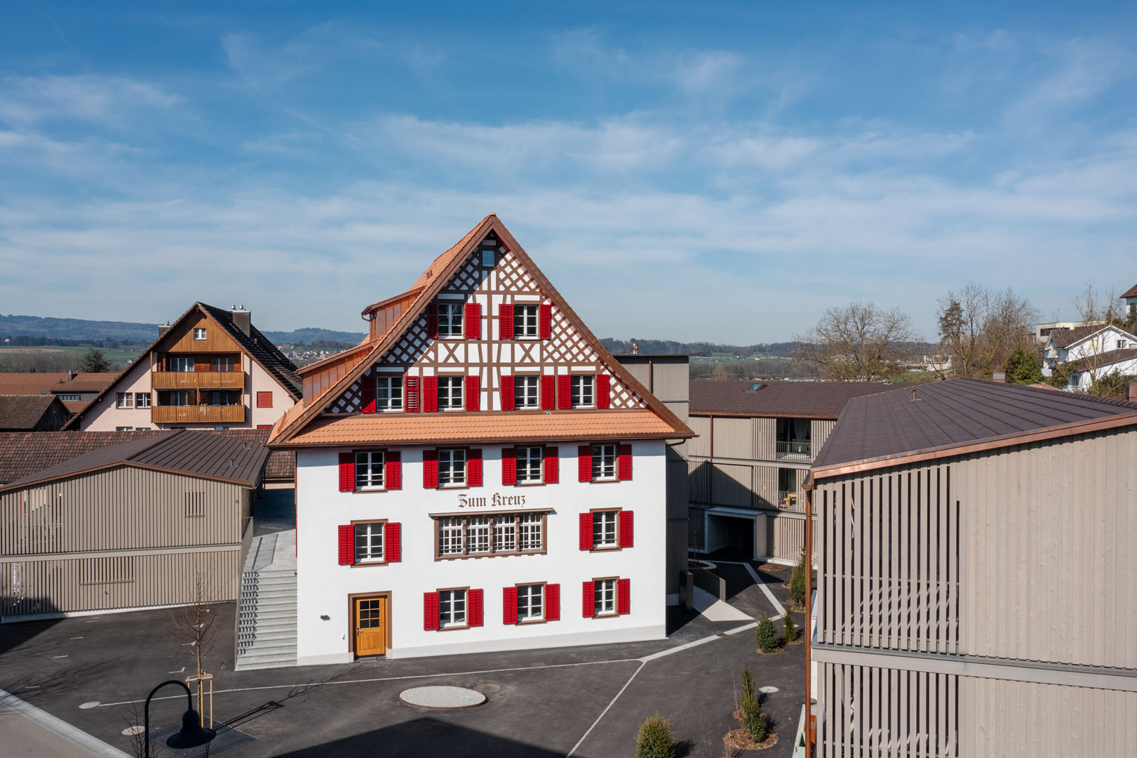 Beim Projekt Kreuz Jonen entstanden drei Mehrfamilienhäuser und der Umbau des Gasthofes Kreuz.