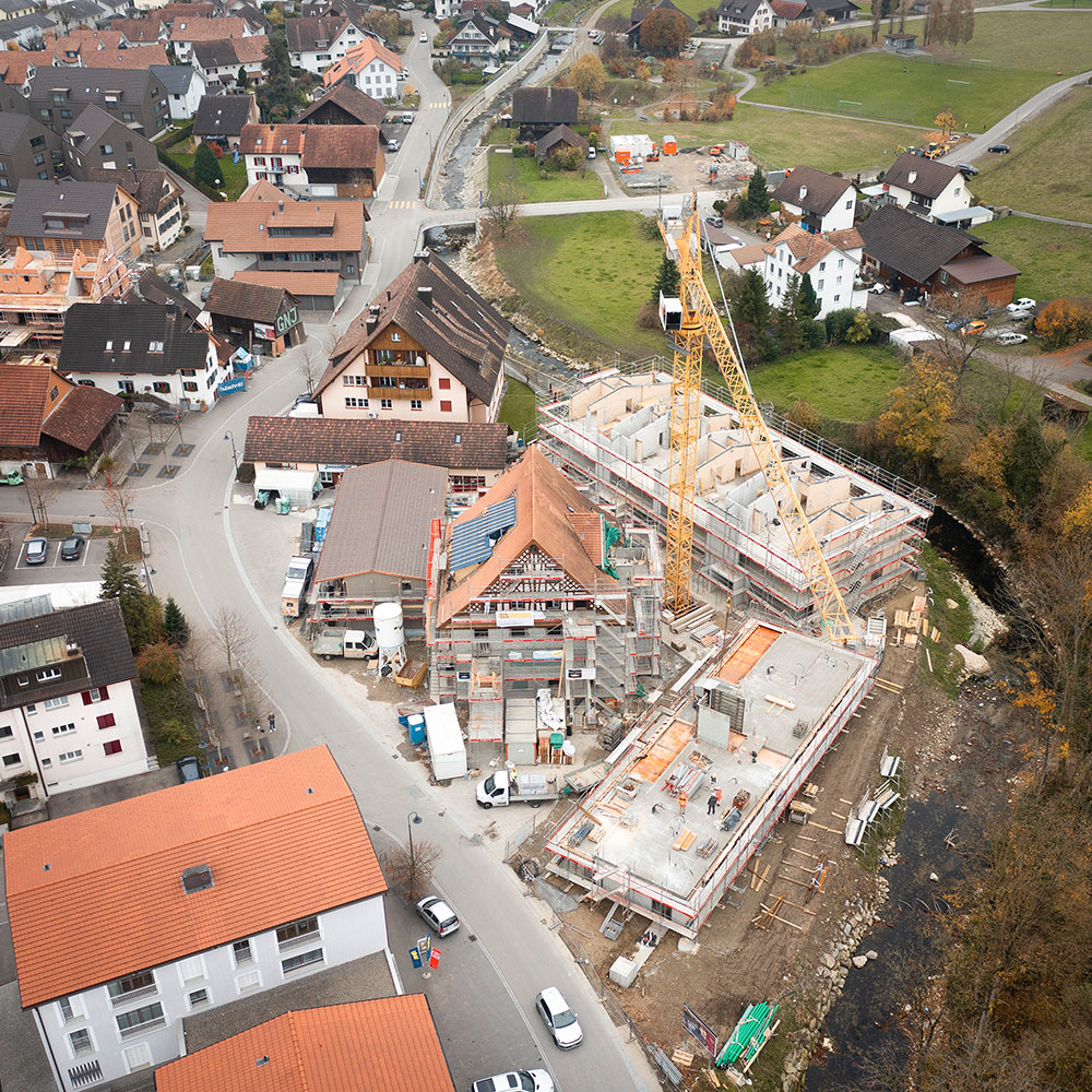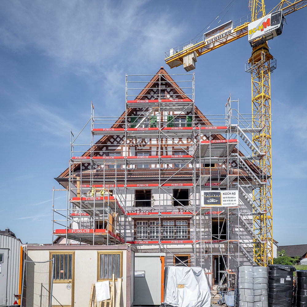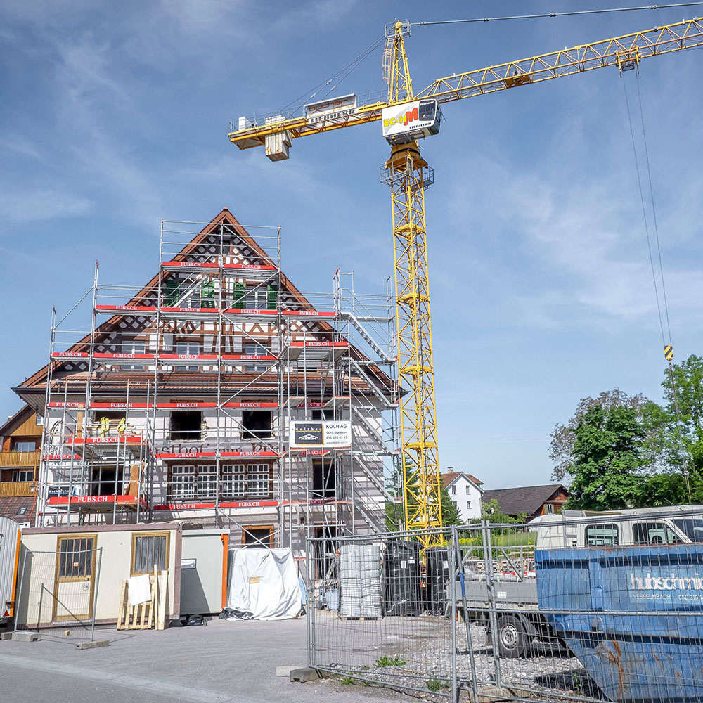 Beim Projekt Kreuz Jonen entstanden drei Mehrfamilienhäuser und der Umbau des Gasthofes Kreuz.