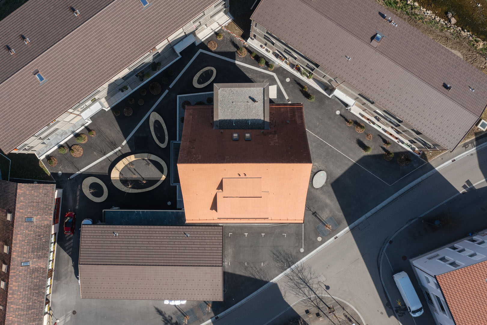 Ergänzt wurde das Ensemble durch drei neu gebaute Mehrfamilienhäuser, die sich durch ihre klare,