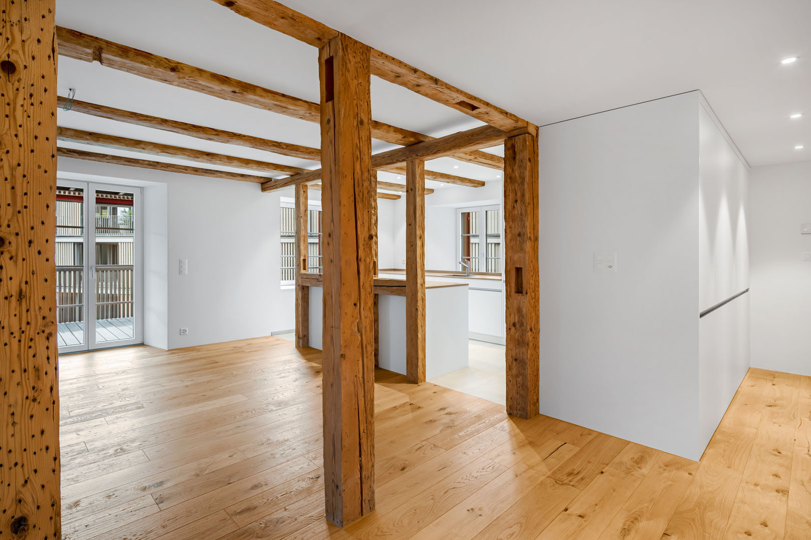 Im Erdgeschoss wurden Büroräume und in den zwei darüberliegenden Stockwerken je zwei