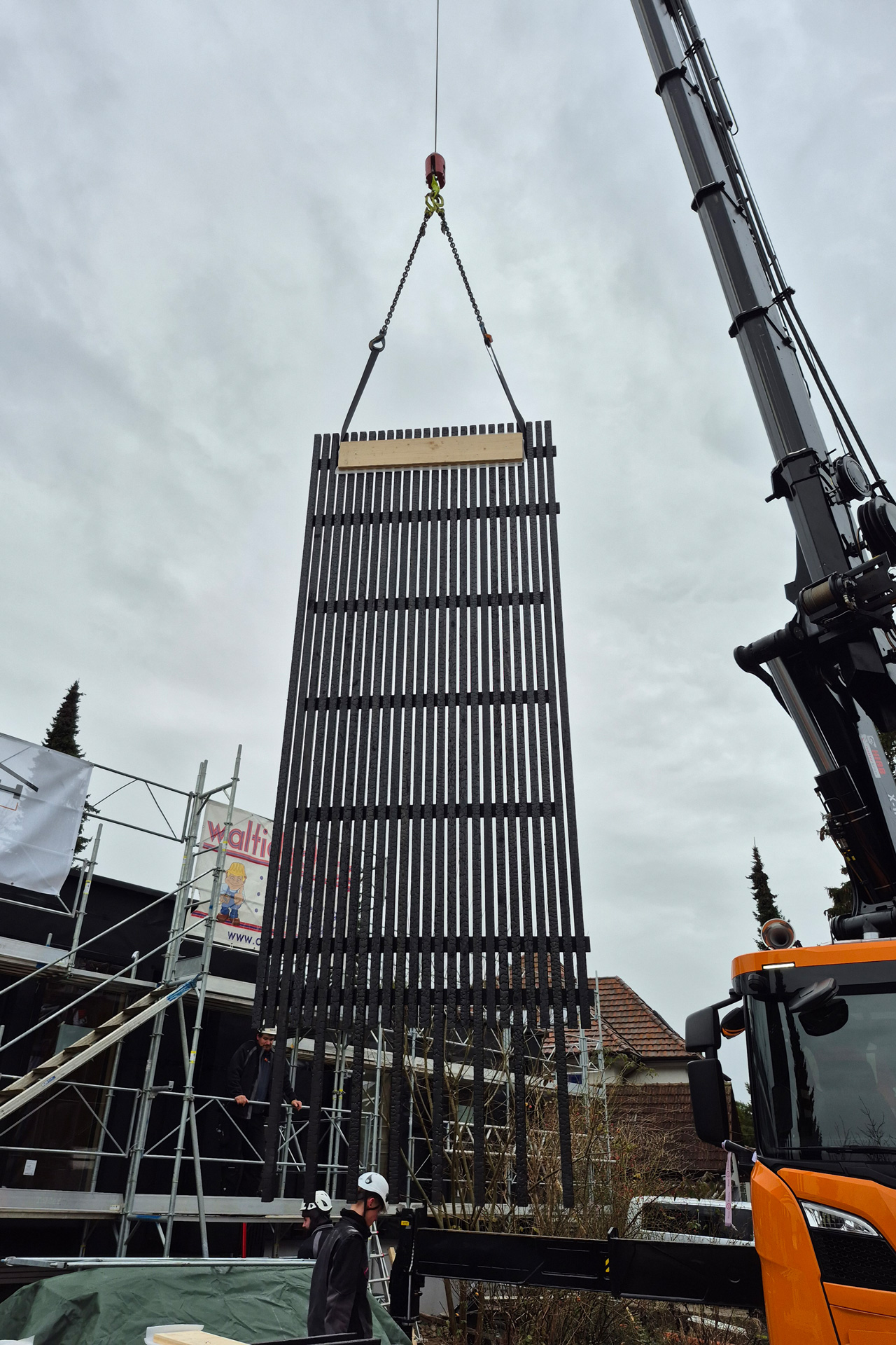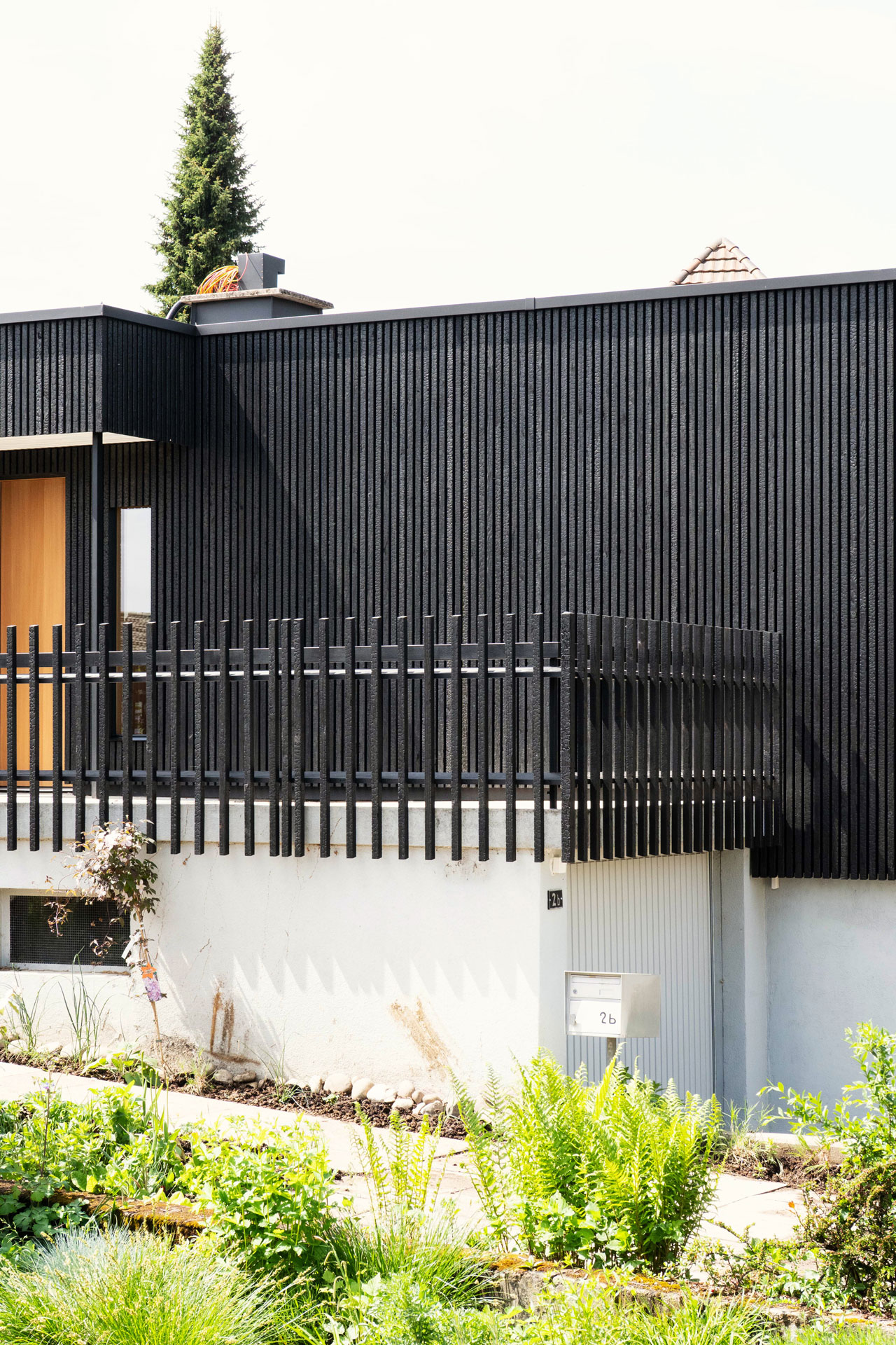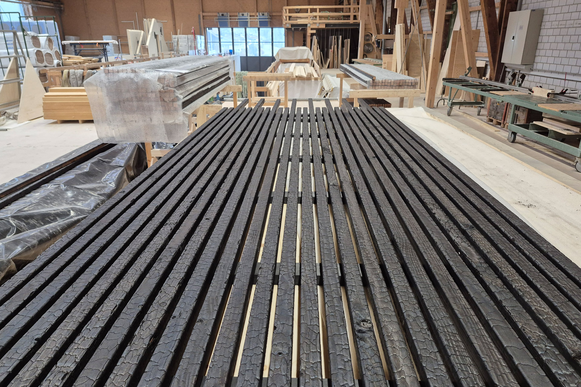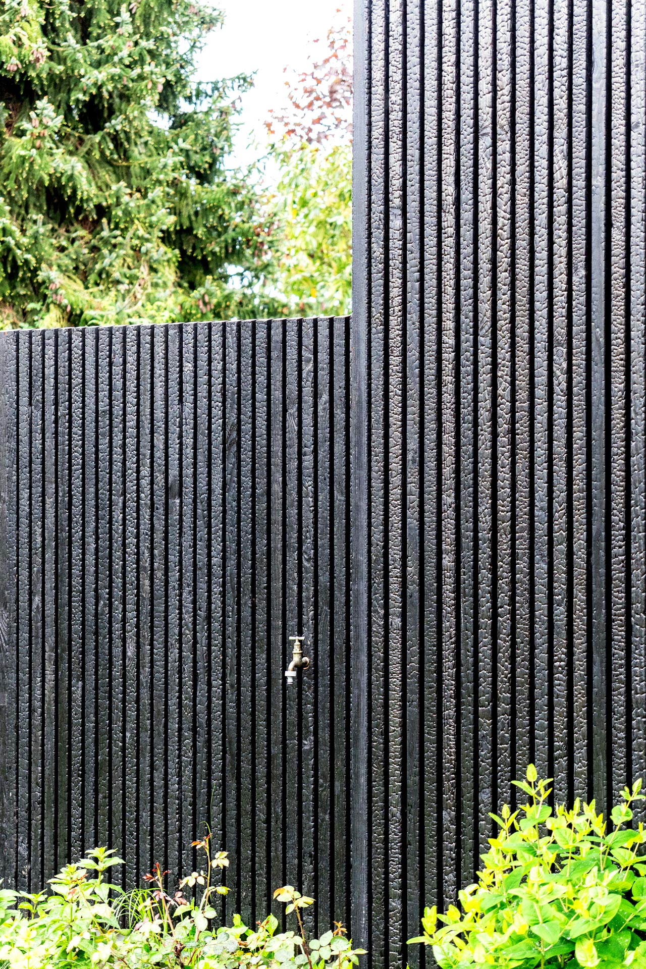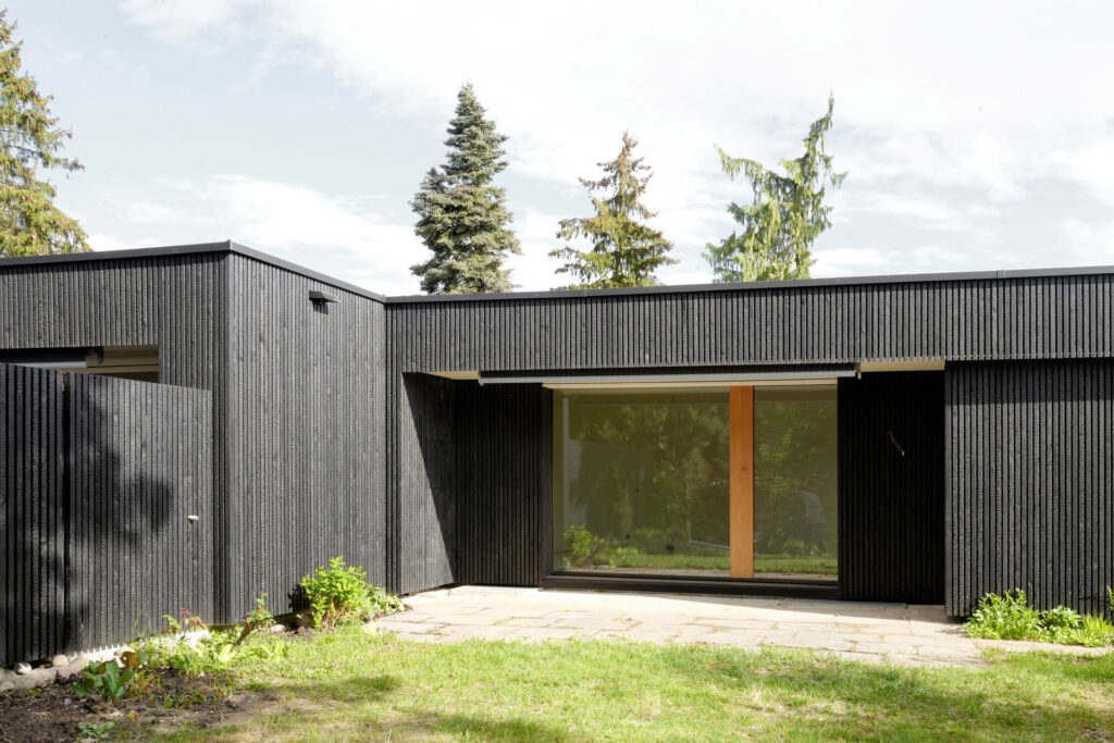Ein besonderes Augenmerk bei diesem Projekt lag auf der Fassade: Zum Einsatz kam „Naoshima Strong“, verkohlte Fassadenriemen aus Douglasie. Sie überzeugen nicht nur durch ihre Ästhetik, sondern auch durch ihre Widerstandsfähigkeit. Die Fassadenelemente wurden verdeckt befestigt und sind auf einer langlebigen Unterkonstruktion aus Accoya montiert.