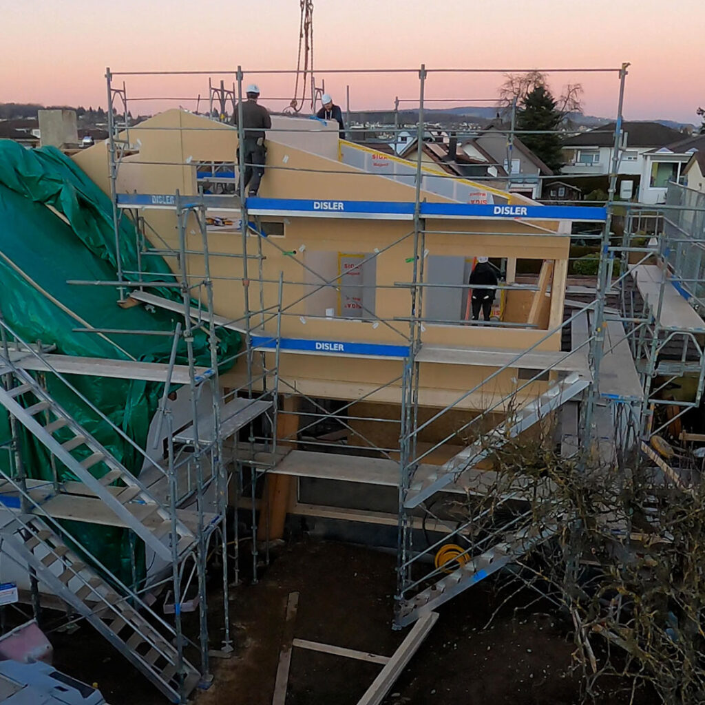 Auf einer Baustelle in Wohlen hat das Holzbau-Team innert kürzester Zeit einen Anbau realisiert.